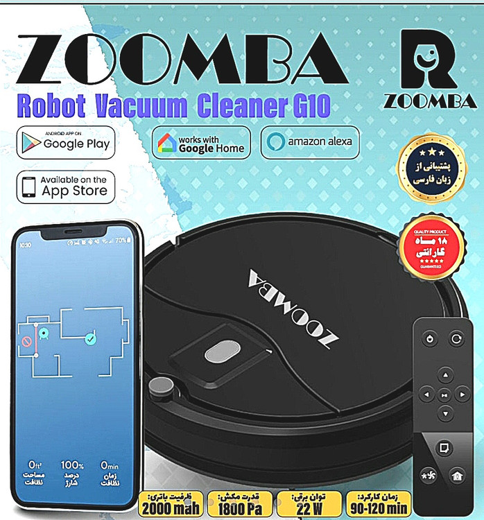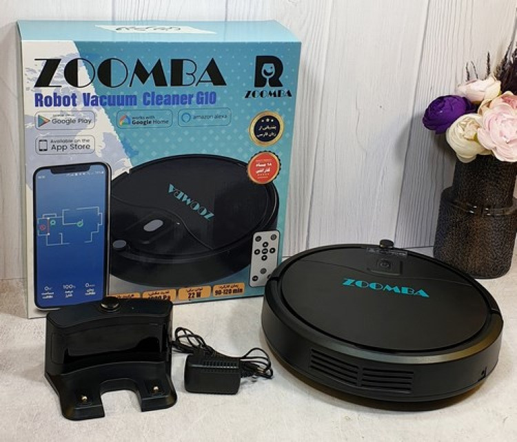 جارو برقی هوشمند رباتی G10زومبا (گارانتی 18 ماهه شرکتی)باقابلیت اتصال به موبایل و اتصال هوشمند به پانل شارژ وساپورت چند زبان(زبان فارسی)