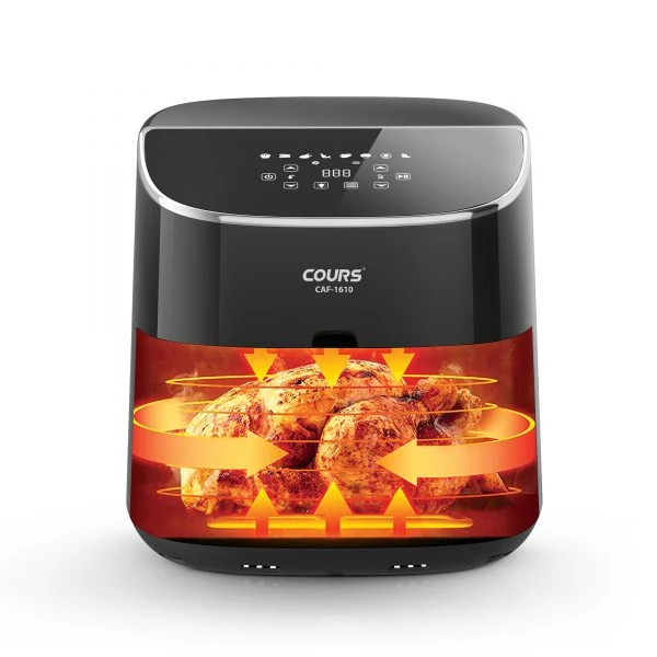 سرخ و هواپز تمام لمسی کورس1608 با ظرفیت 6/5 لیتر ،برای طبخ بدون روغن مرغ،ماهی،استیک، کتلت،سیب زمینی و انواع غذاها به شما امکان میدهد تا مقدار بیشتری از مواد غذایی را به صورت همزمان سرخ کنید. همچنین با 8 برنامه پیش فرض و قابلیت تنظیم خودکار، سرخ کردن و طبخ مواد غذایی برای شما بسیار راحت است با استفاده از دکمه های لمسی، شما می توانید به سادگی بین 8 برنامه پیش فرض مختلف انتخاب کنید. همچنین، قابلیت تنظیم خودکار برای دما و زمان پخت، بهترین کیفیت و طعم غذا را خواهید داشت بنابراین، شما می توانید به راحتی غذاهای مختلف را طبخ کرده و از آنها لذت ببرید