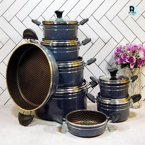 سرویس قابلمه 7 پارچه تفلون طوسی زنبوری زومبا(متریال تفلون بسیارباکیفیت))
