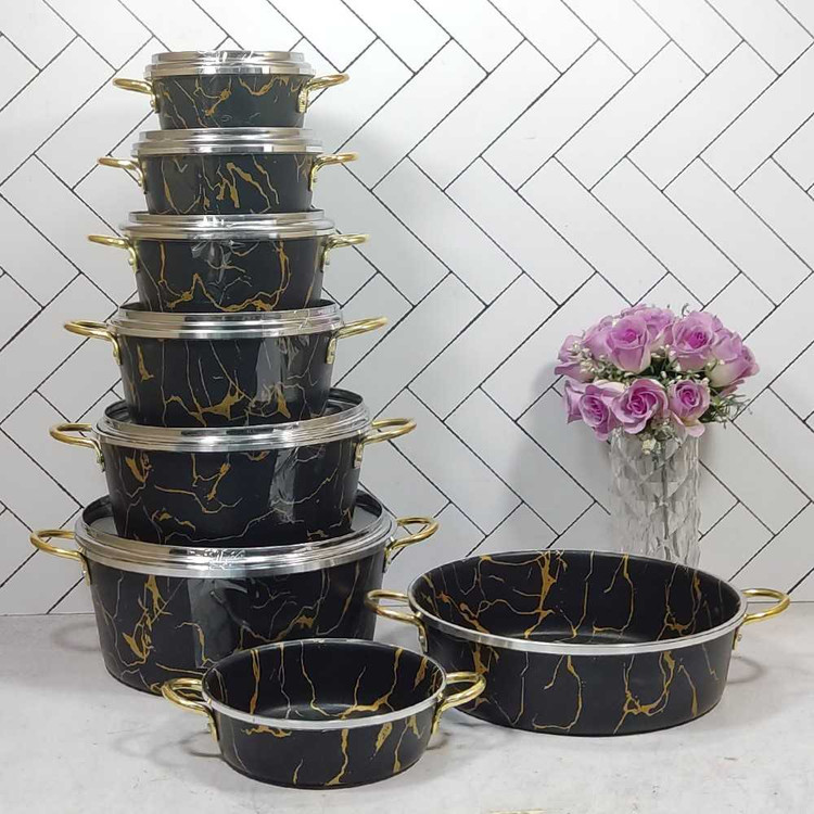 سرویس قابلمه 14 پارچه تفلون مشکی زنبوری دسته فلزی
