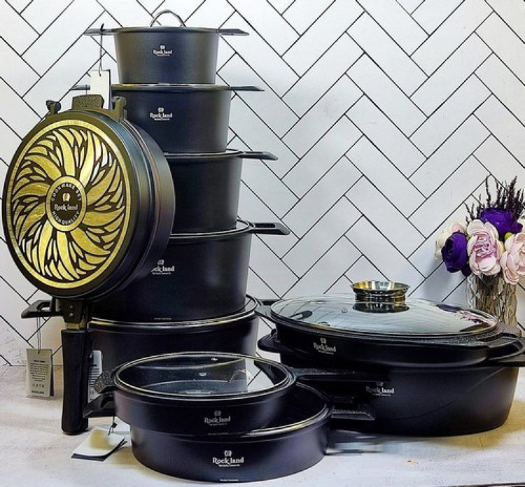 سرویس قابلمه 14 پارچ راکلند مشکی (باضمانت نامه شرکتی)(ضدخش)متریال چدن بسیار باکیفیت