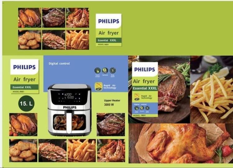 سرخکن فیلیپس (دوالمنت)مدل 9270 باسبد بزرگ16لیتر (جلوشیشه با لامپ داخل سبد)مدل 9925 (قابلیت پخت مرغ 3/5 کیلو)توان پخت 3500وات