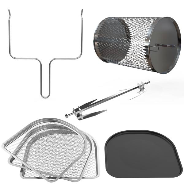 قطعات همراه دستگاه : توری سرخ کن گردان – جوجه گردان – سینی روغن گیر -توری